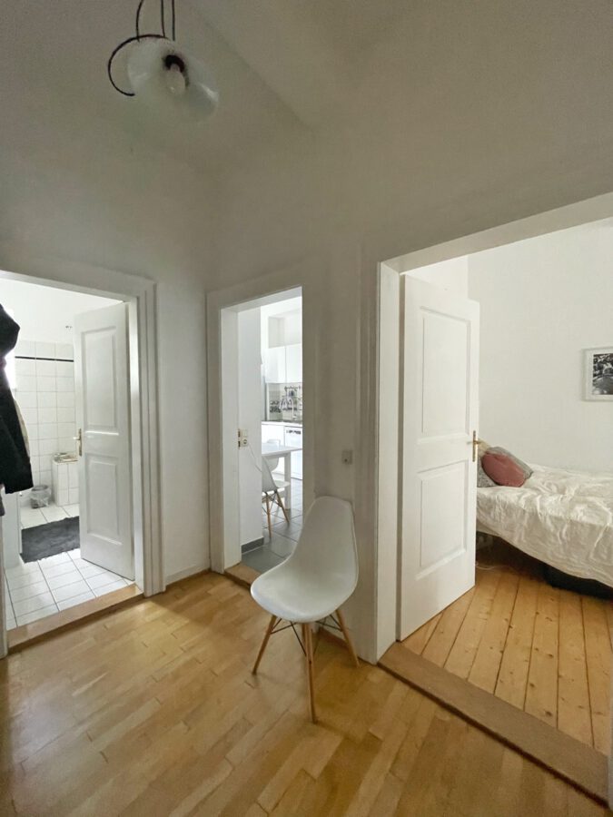 Bereits beim Betreten der Wohnung vermittelt der schöne, alte Holzboden eine warme und einladende Atmosphäre. Zwei der vier Zimmer sind besonders großzügig geschnitten und bieten vielfältige Nutzungsmöglichkeiten – ob als Wohn-, Schlaf- oder Arbeitsbereich.