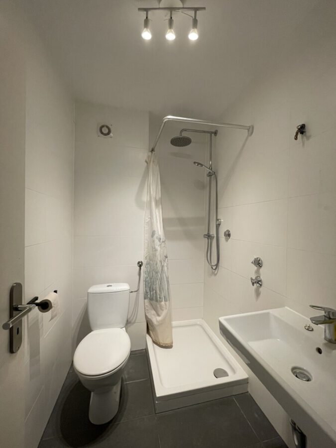 Die Badezimmer sind jeweils mit einer Dusche ausgestattet und zeitlos weiß gefliest.